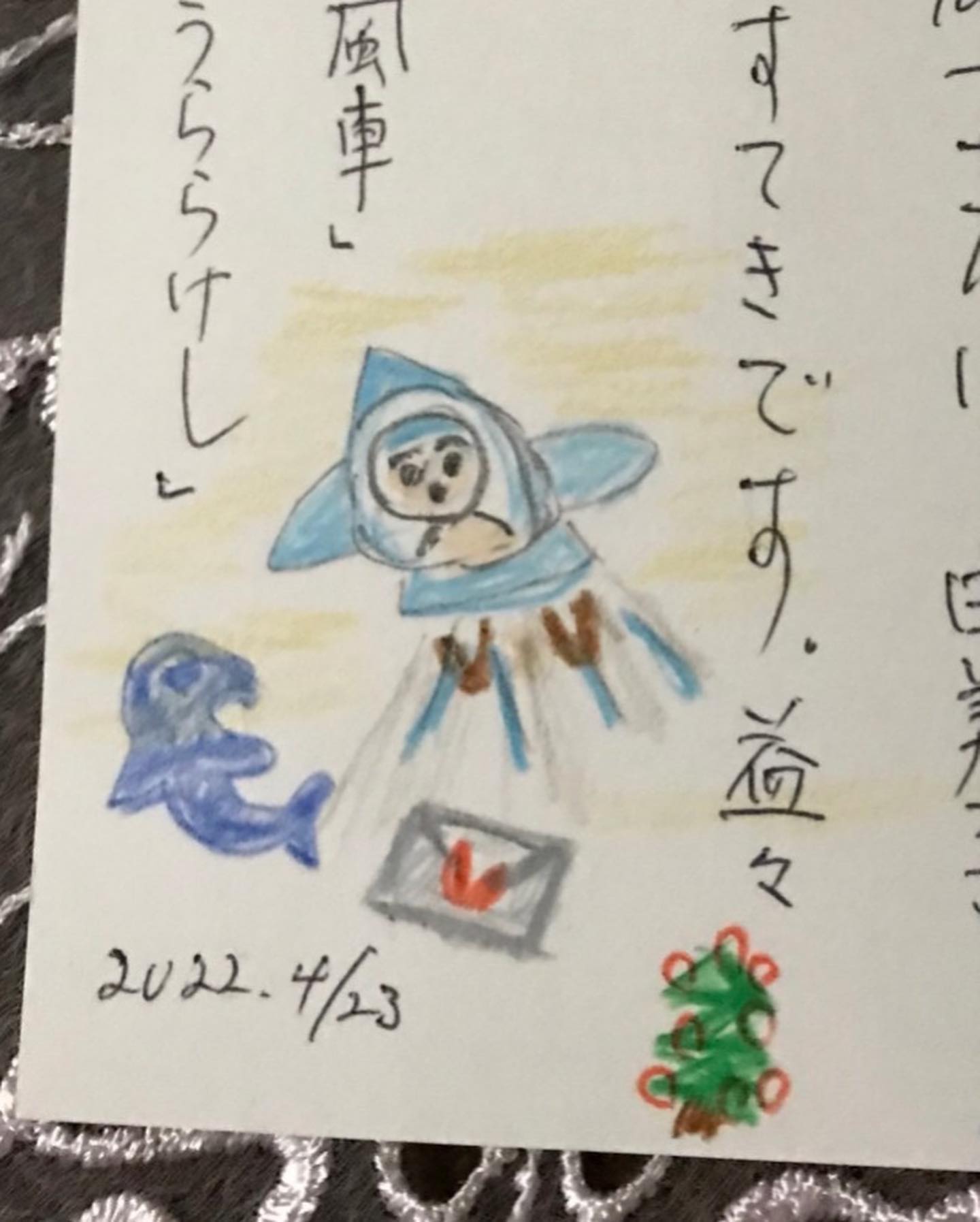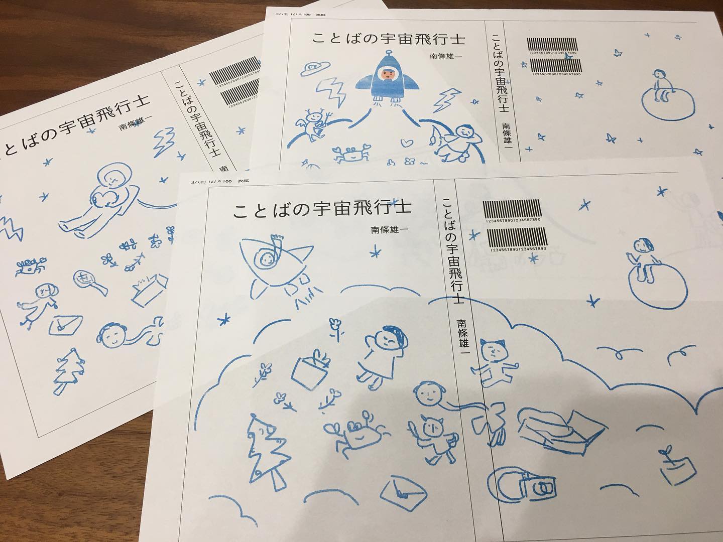 このような工程を経て、心を込めて本を世に出せた所、詩集『ことばの宇宙飛行士』に触れた小さな読者さまから、素敵な、装画の模写が届いた。